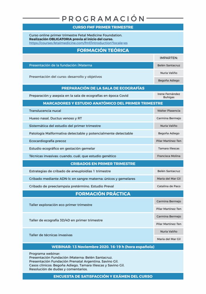 Gracias a nuestro acuerdo de cooperación con la Fundación iMaterna, una organización sin fines de lucro integrada por renombrados referentes de la medicina materno-fetal española, podemos seguir brindando acceso a educación médica especializada, actualizada y basada en la evidencia, en idioma español. Agradecemos a la Fundación iMaterna por confiar en nosotros, los invitamos a conocer el excelente programa del curso y a inscribirse a través del link al final de esta página. Los cupos son limitados!